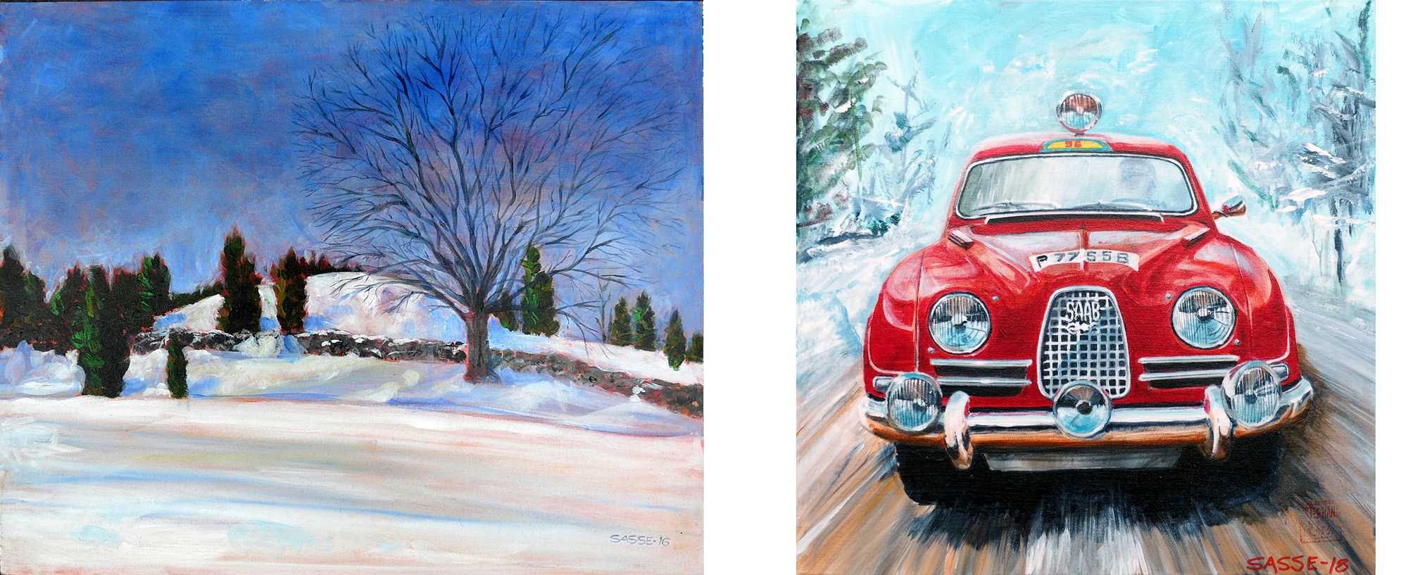 Finally a start after Corona with a group exhibition at Allégården in Haga, Gothenburg. I have one painting on show. I have tried to interpret Joakim Bonnier in a Porsche 718 RSK in Sicily during the Targa Floria competition. Acrylic on canvas.