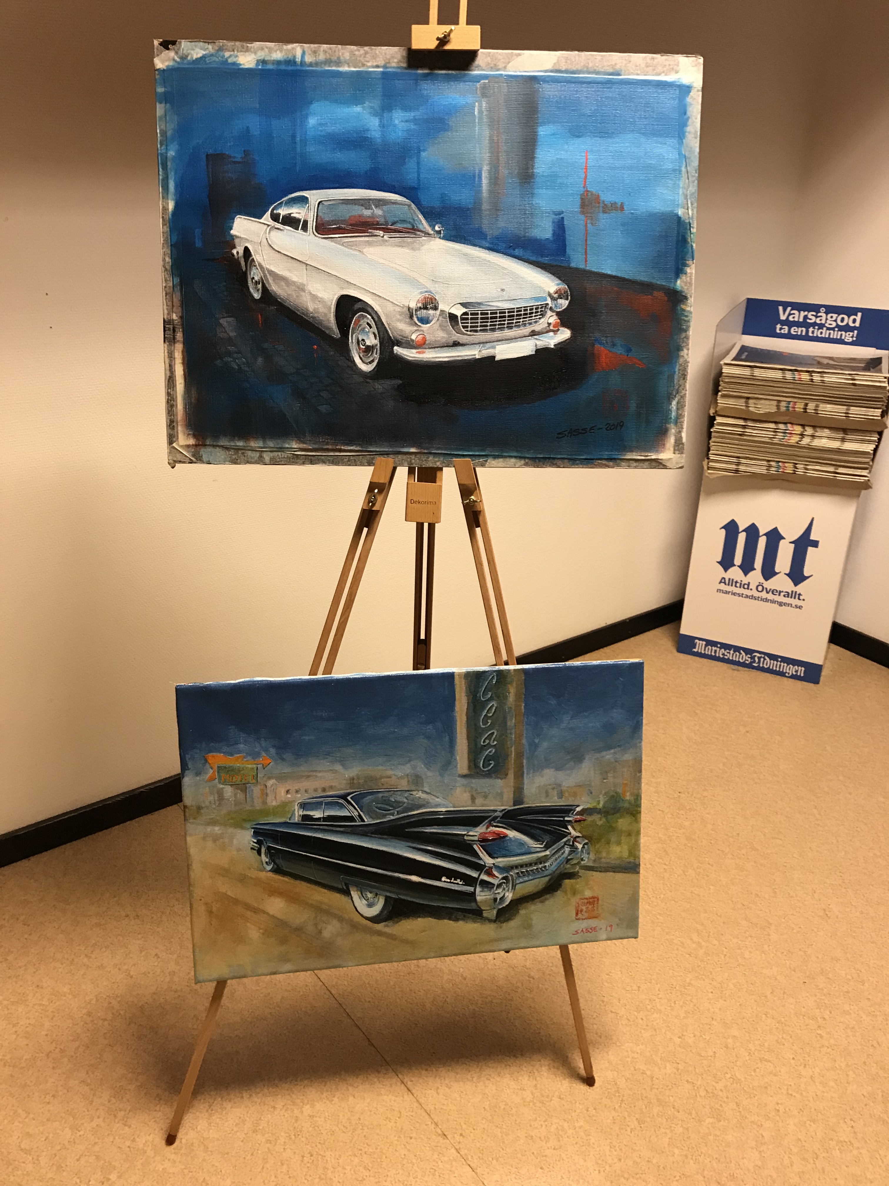 Had the opportunity to participate in the Aspöja Market Day in Byggdegården, the old school, with some paintings. It was mostly archipelago motifs but also some cars.
