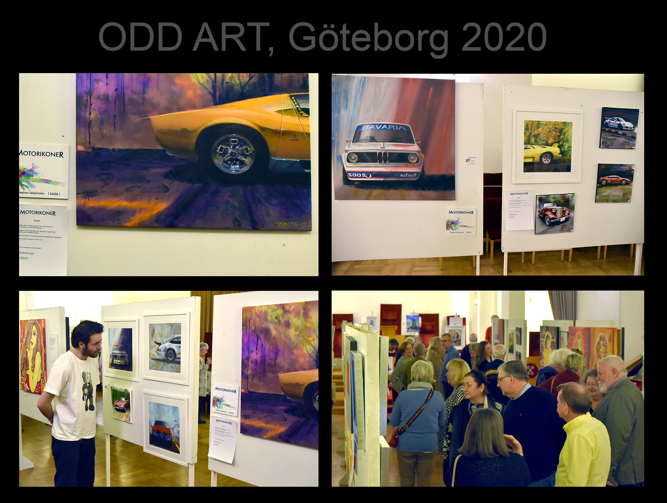 Äntligen en början med en samlingsutställning på Allégården i Haga, Göteborg. Jag fick med en målning. Jag har försökt tolka Joakim Bonnier i en Porsche 718 RSK på Sicilien under Targa Floria tävlingen. Akryl på duk.