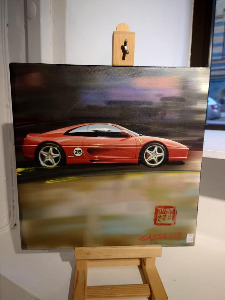 Painting still works well despite being in quarantine. This should be a Lotus Exige! As is usually the case, it is in acrylic on a canvas (50 cm x 50 cm)