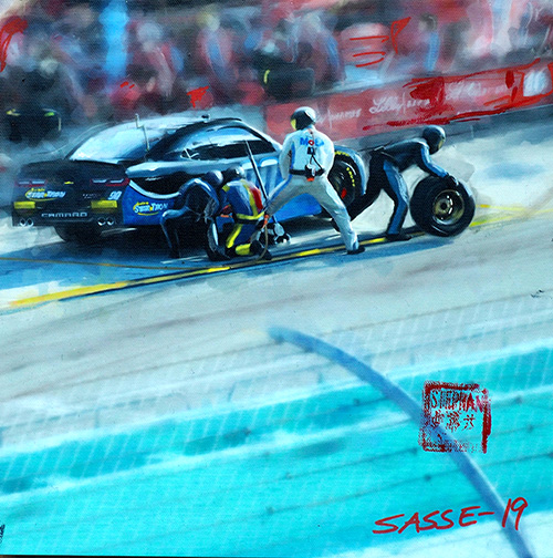 Victory in Indy 500. Marcus Ericsson became the second Swedish driver to win the famous race on the track in Indianapolis. I tried to portray him as he crosses the finish line with the bricks, remains from when the entire course was built of bricks.