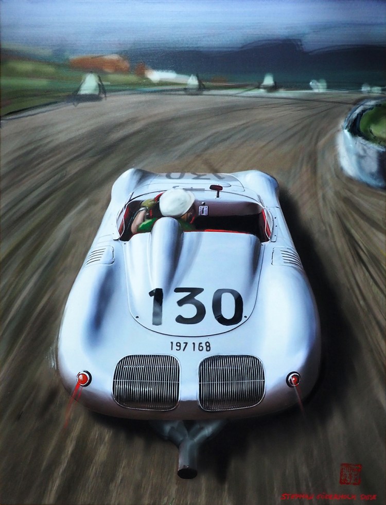 43rd Targa Florio – 1959. Joakim Bonnier leads in his Porsche 718 RSK. Unfortunately, the car broke down on the last lap just before the finish when von Trips, with whom Jo shared the car, broke the rear axle. Bonnier won the ”Targa” the following year with Graham Hill in a similar car with a higher windscreen. In both 1959 and 1960, Joakim Bonnier drove the fastest lap on the track with 1100 curves in a car with 1680 cc against many competitors in cars with 3-liter engines.