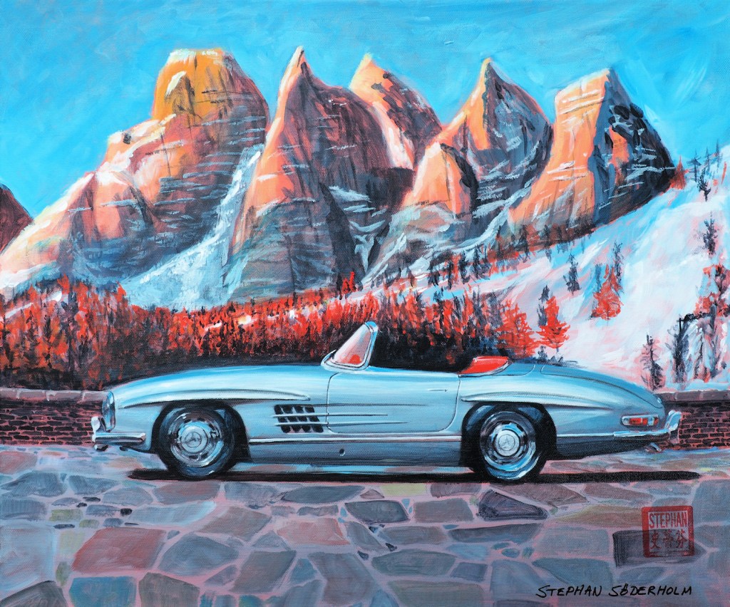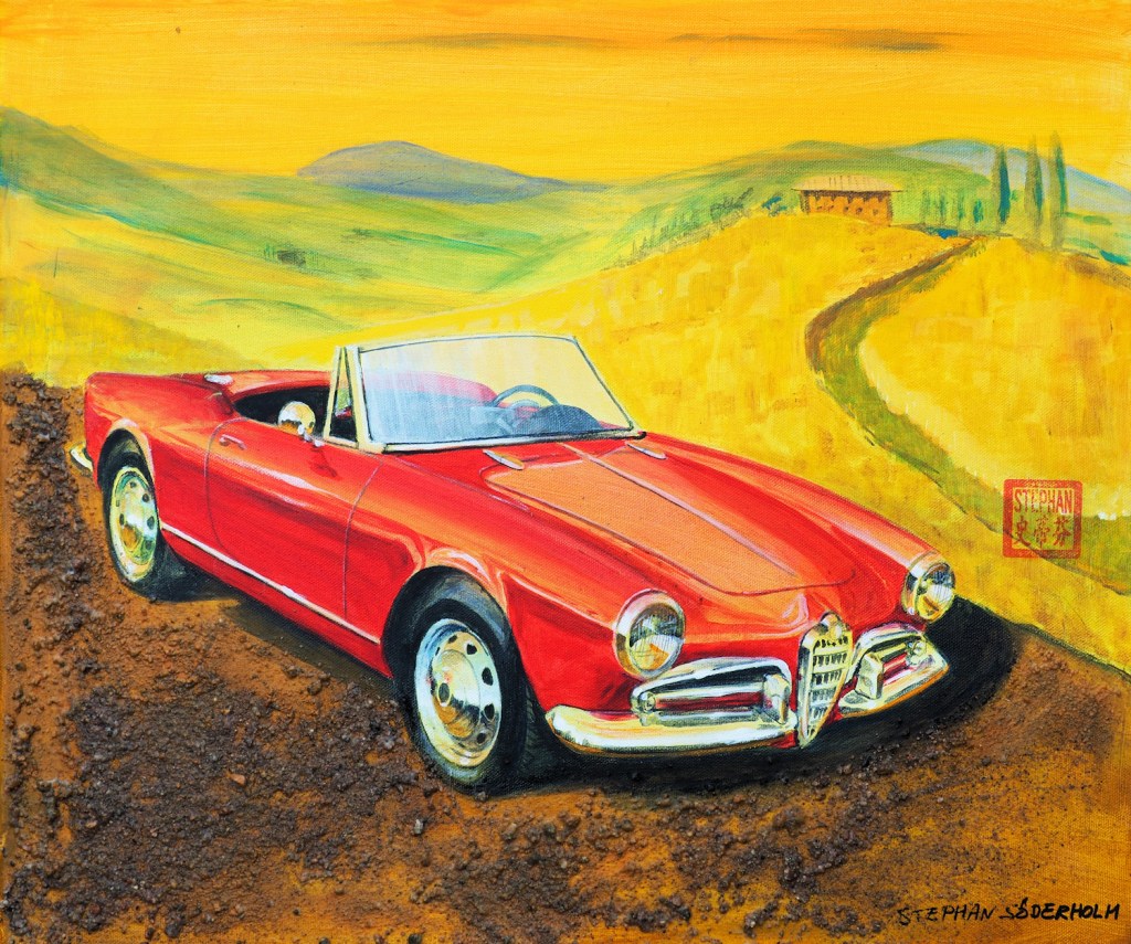 Fortunately, I grew up when cars had character and different characteristics. Here I have tried to interpret a couple of beloved and successful with different driving characteristics. This is where an Abarth with noticeable oversteer leads over a Cooper with equally clear understeer. I have painted the moment with acrylic paint on linen canvas.